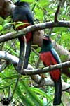 | Trogons Trogon collaris (two left pictures) and T. massena, Costa Rica. |
