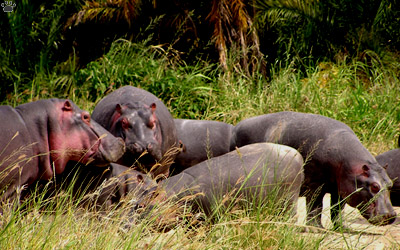 As the night approaches, hippos leave their ponds, lakes and rivers, and walk ashore to graze.